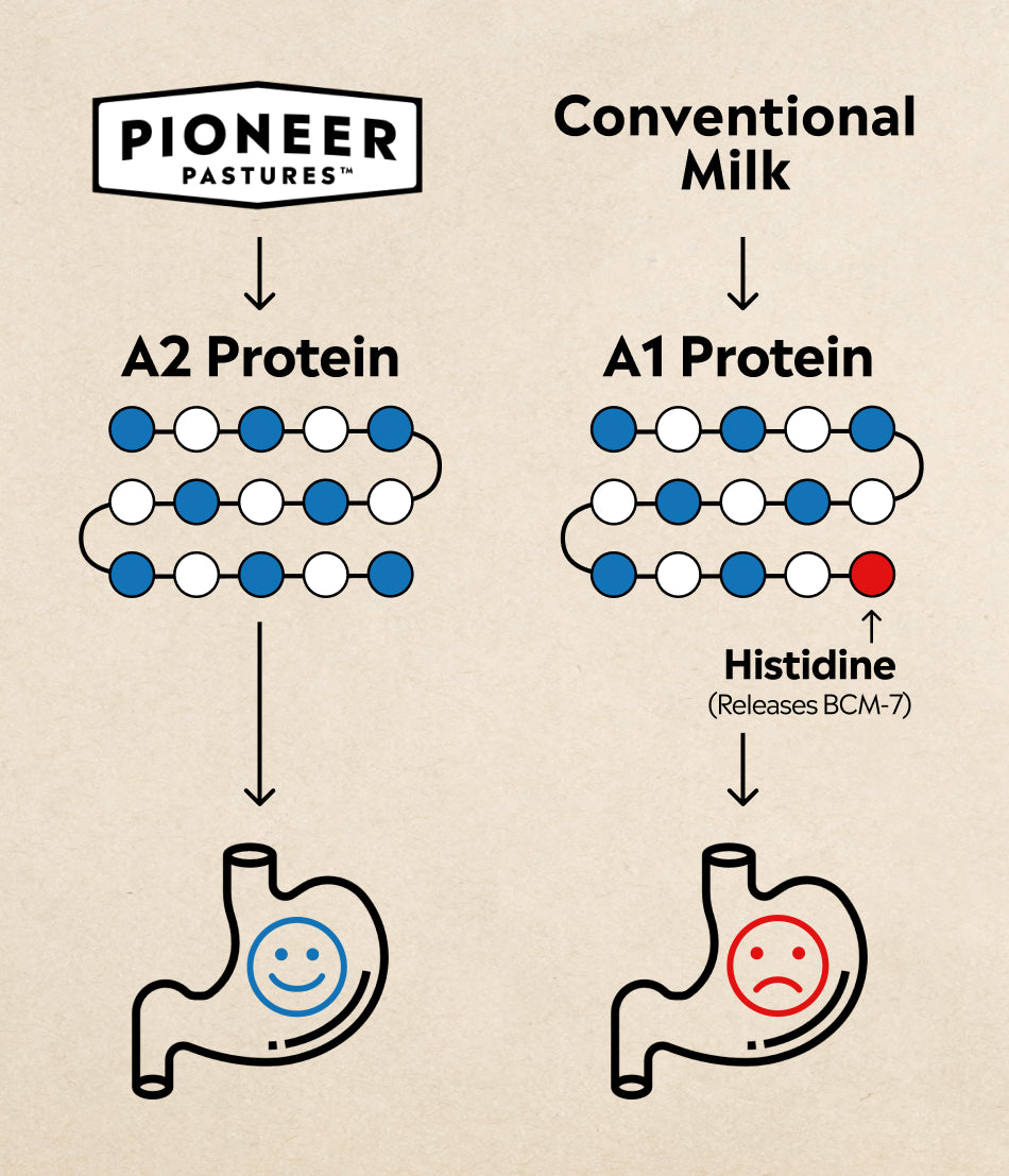 Pioneer Pastures is the only milk that checks all the boxes—low sugar, high protein, and A2 for easier digestion!